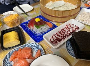 は手巻き寿司で「無病息災」を願いました。
