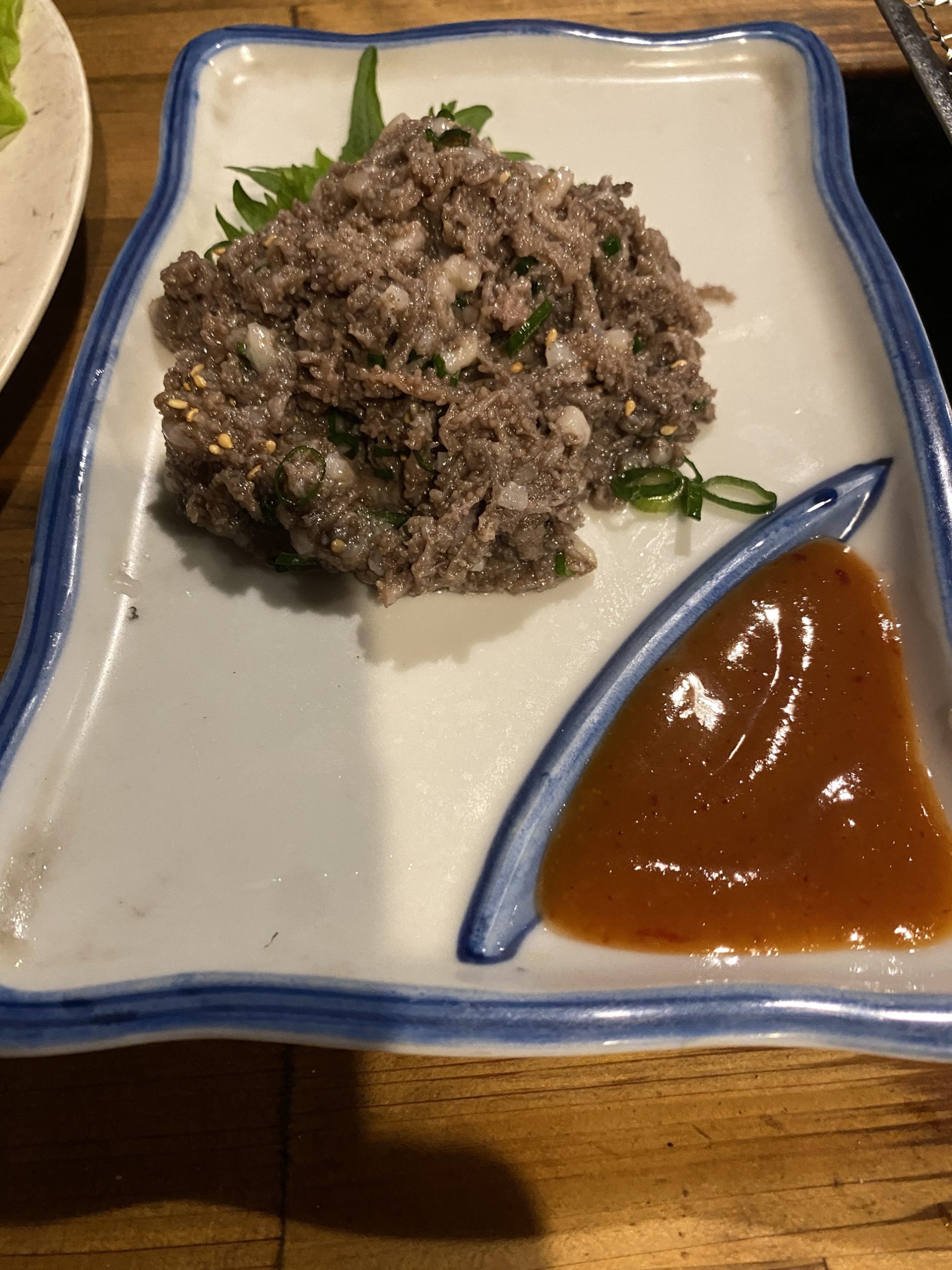 センマイ刺し。お店にあると必ず頼んでしまいます。お店によってタレの味も違いま すが、こちらのお店のタレは私好みでした♪