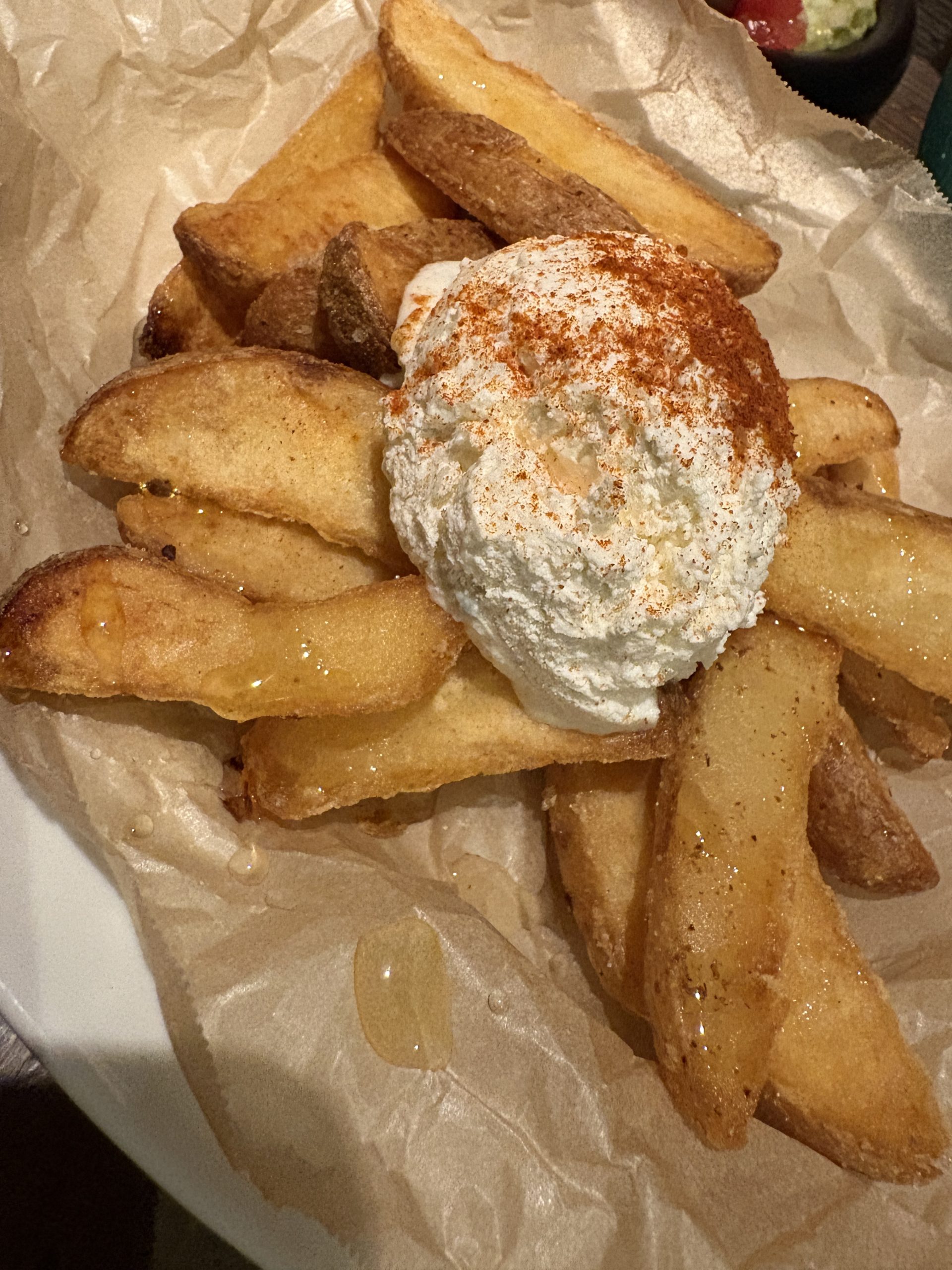 ポテトにシロップをかけていただきました。とてもおいしかったです。お酒に合いま す♪
