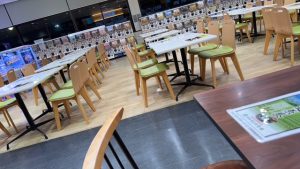 深夜のサービスエリアの食堂は、こんな感じです。本当に誰もいませんでした。さみしい感じですが、店内は清潔でしたし、食事はとても美味しかったです。ゆっくりできました。